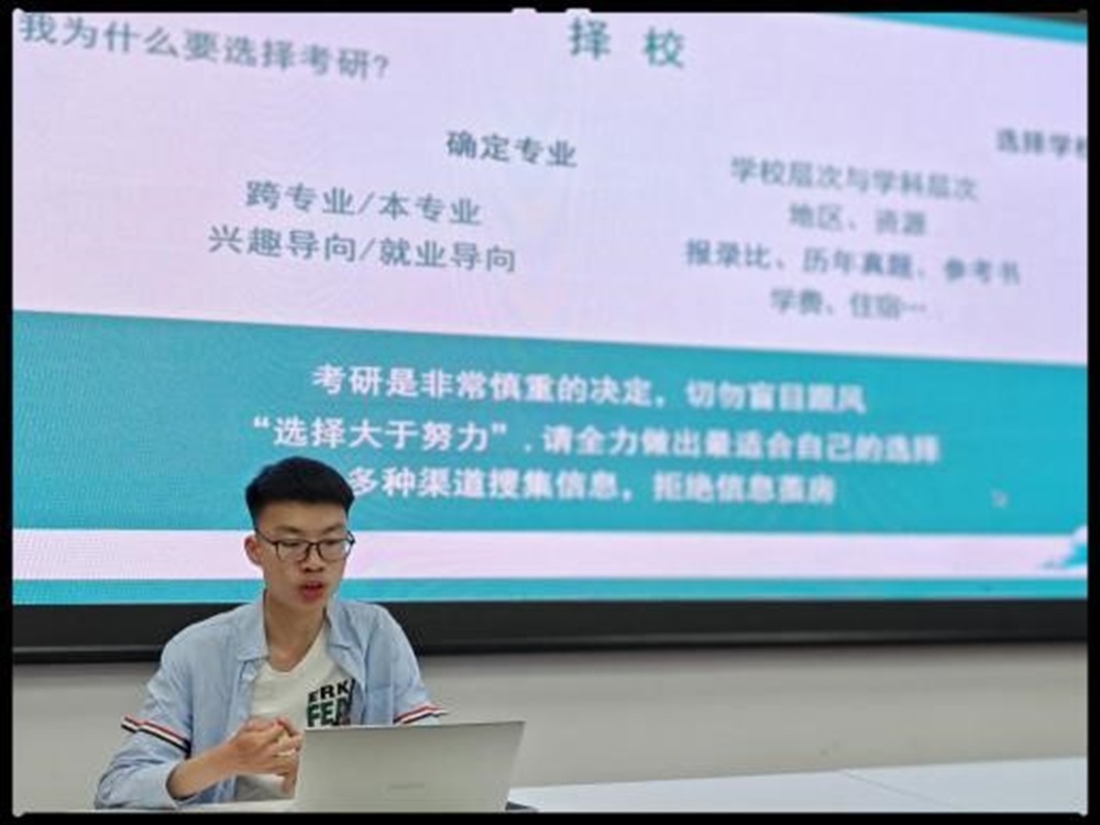 5月7日晚,麻豆瓜网 考研经验分享会在学院221教室举行。沈泽原与陈瑶两位学长以亲身经历为指导,用平实而深刻的话语,帮助同学们明确考研方向、熟悉备考流程、解答备考疑惑,体现了朋辈互助的示范和引领作用。