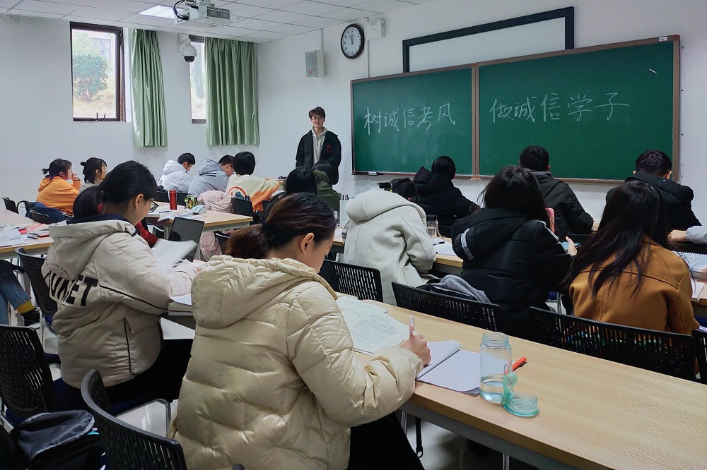 会上,闫老师提出:“诚信,乃中华民族的传统美德,也是一个人的立德之本。”他希望同学们以诚信的态度对待每一门考试,把道德原则和道德规范化为自己的内心信念和实际行动,诚信备考、诚信应考,积极营造优良的学风、考风。同时,闫老师还鼓励同学们要相信自己的能力与水平,做好合理规划,充分把握与安排复习时间,凭实力去争取优异的成绩,做到问心无愧。最后,闫老师针对同学们在复习上遇到的问题分享了自己的学习方法,如政治问答题应层层递进、复习高数应注意基础理论等,使同学们受益良多。