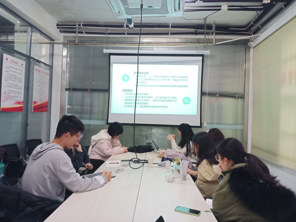 随后,范思怡同学用动物园里被囚禁的动物容易感到焦虑以及养老院里被赋予更多选择权的老人寿命更长的例子,生动形象地引出“人们想要选择的原因是人类具有与生俱来的选择欲,代表着对控制权的渴求。”她在与同学们进行互动交流的过程中,穿插日常生活中的例子,向同学们分别讲解了自动系统与反应系统、可利用性法则带来的决策偏见、7±2法则可能会如何影响人们做出选择。最后,范思怡同学指出选项越多,可能后悔越多,并为同学们介绍了几种怎样改进选择的实用性方法。