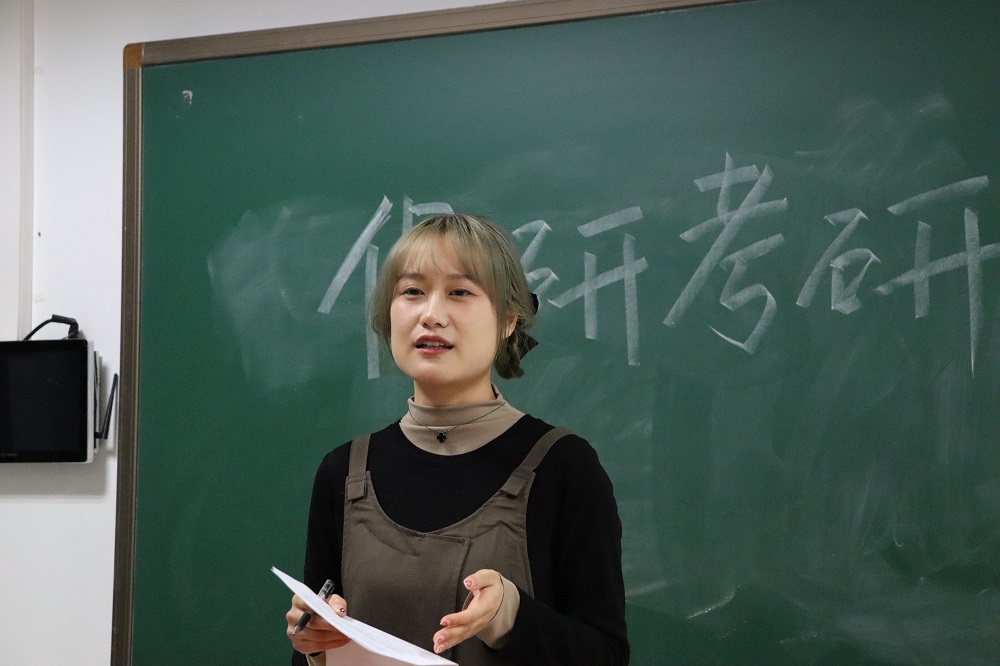 而后考研成功的陈雪莹同学针对同学们之前反映出的问题作出了解答,希望同学们明确自己的考研目标与方向,并多通过线下线上等方式渠道获取相关的信息资料。
