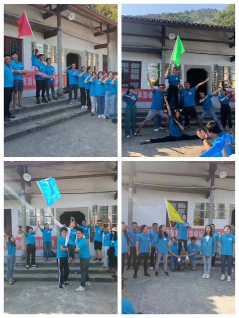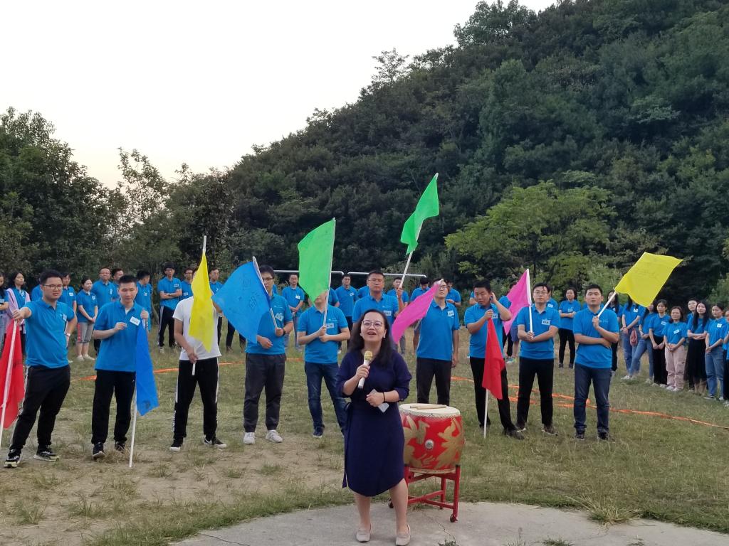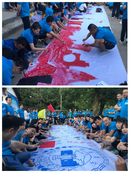 训练有素的就餐完毕后,进入 “团队组建PK环节”。在迅速组队和记名字互识后,10个队伍各推出了队长,并分队画队旗,起队名,喊口号,唱队歌,列队雕,各小组成员相互配合,异彩纷呈,彼此间的距离感进一步拉近,成功“破冰”。