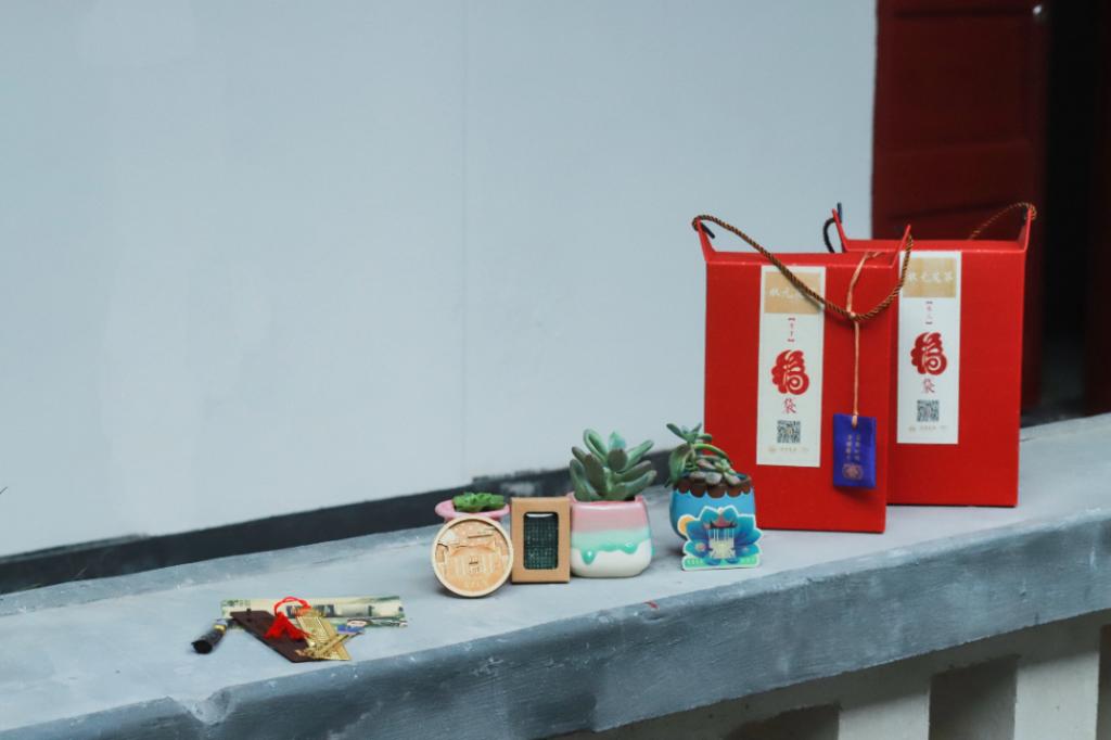 第一组:竹书签、磁铁书签、景观冰箱贴、古迹本、竹明信片、木制明信片、纪念笔、便当盒(以上任选三样)+香囊