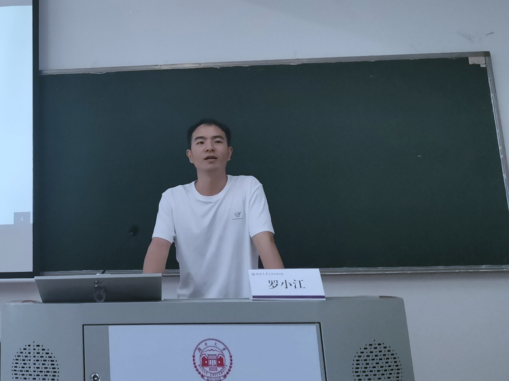 会议伊始,荣获湖南省2021届优秀毕业生的罗小江,以《觉醒年代》视频片段开启了本次分享。罗小江分享的主题是“笃定理想+主动创新学习+坚持不懈=无悔青春”,他从“追求崇高理想,笃定青年理想”、“主动自主学习,营造良好环境”、“坚持探索实践,主动认识感悟”三个方面进行介绍。他强调伟人的使命和理想都源于实践,科研与现实也密不可分,应积极进行实地调研、深入基层扎根基层,真正把论文写在中国大地上。其次,为启发大家选题思路和扎实学习,他分享了个人相关经验。最后,他勉励大家积极践行麻豆瓜网