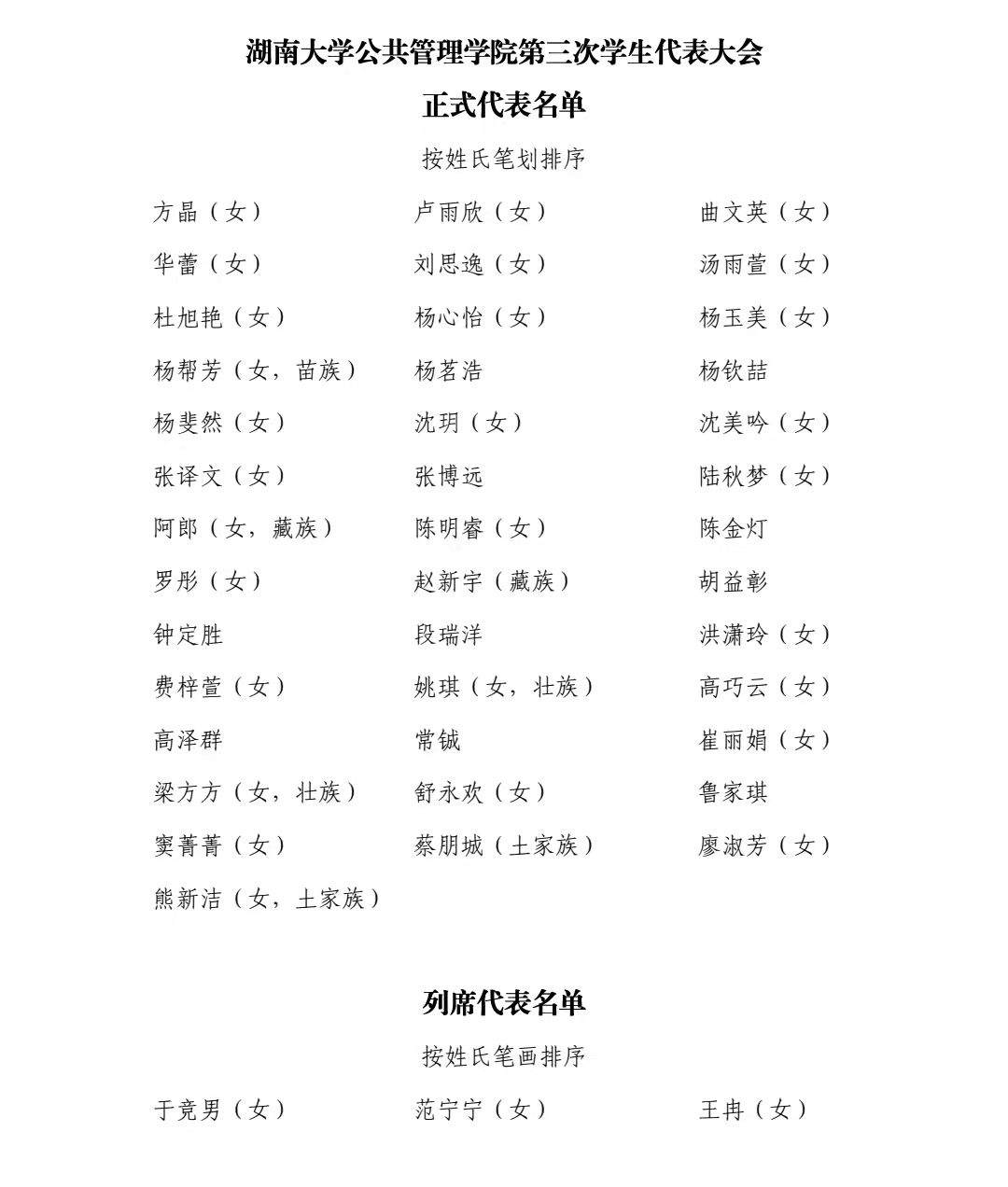 依据《麻豆瓜网 第三次学生代表大会代表产生办法》等文件,在各班级团支部及挂靠学院社团具体负责下,经名额分配、酝酿推荐、预选、选举合资格审查,现将麻豆瓜网 第三次学生代表大会代表名单公示如下:
