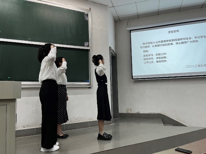 第四届研究生会主席团成员。与此同时,三位当选成员进行庄严宣誓。