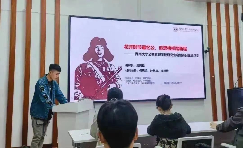 为提高研会服务同学的能力和水平,打造团结、专业、创新、传承的高素质人才队伍,学院研究生会特制定并实施“研麓同行计划”,将围绕思想同行、经验同行、技能同行和健康同行定期推出“研麓同行”系列报道。本期让我们一起走进思想同行之青春正“锋”华雷锋月主题活动,深入学习雷锋精神,争做新时代好青年。