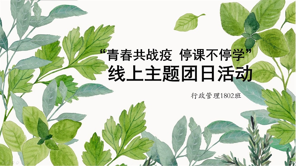 在疫情防控的关键时期,为积极响应学校“停课不停学”号召,加强学习互助和沟通交流,增强班级凝聚力,营造良好班级学习氛围,3月20日上午,行政管理1802班采用特殊的线上形式开展“青年奋力‘云’端筑梦,携手战‘疫’共克时艰”主题班会。本次班会由腊炳辉、陈欣主持,行管1802班全体同学参加。