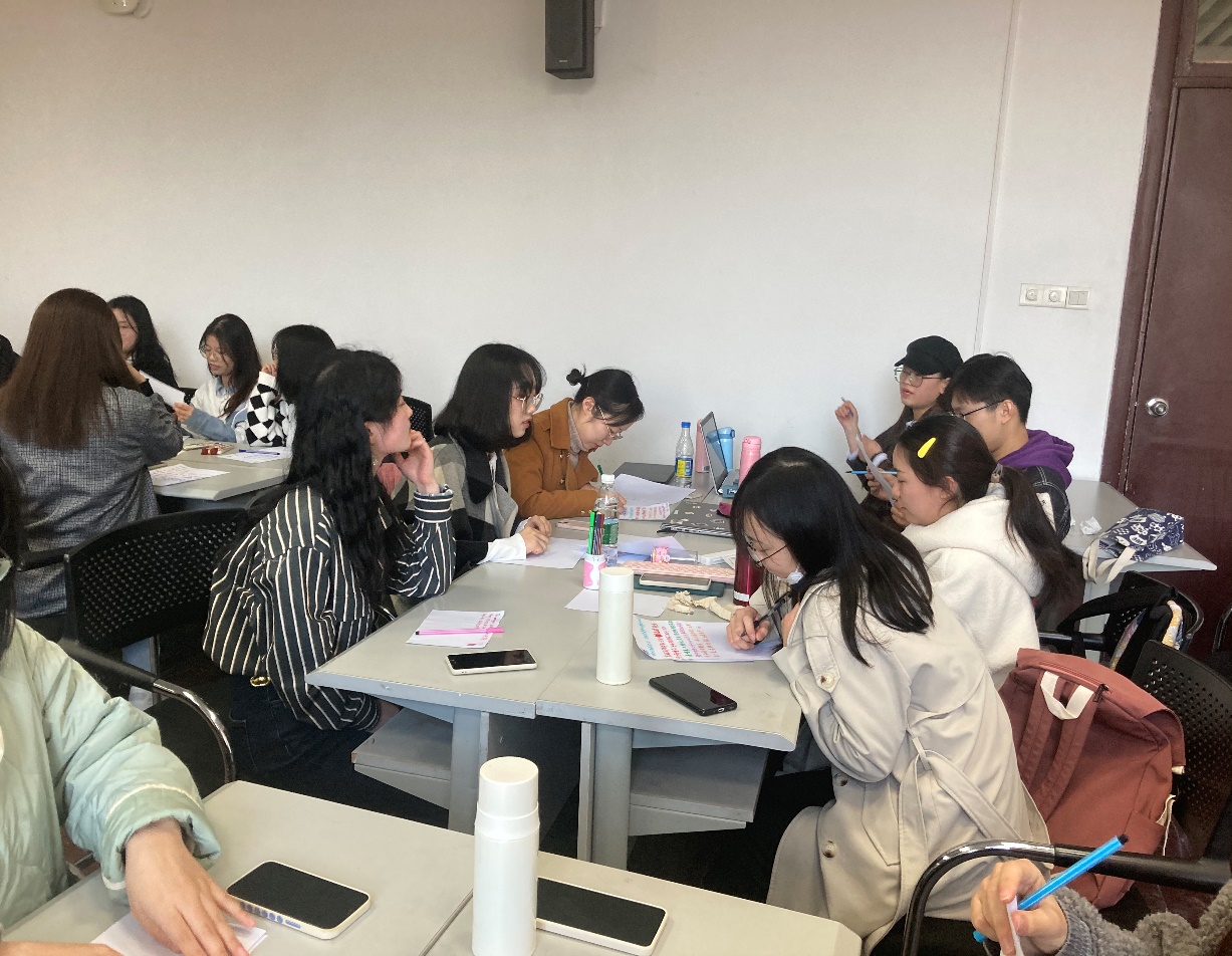 活动最后,杨老师让同学们写下了对身旁朋友的祝福,并且再让每组成员组成了一个圆圈,大家十指连圈,说出了对彼此的祝福。通过这次活动,同学们加深了彼此之间的情感联系,增强了凝聚力,也对研究生学习和生活有了进一步的了解。